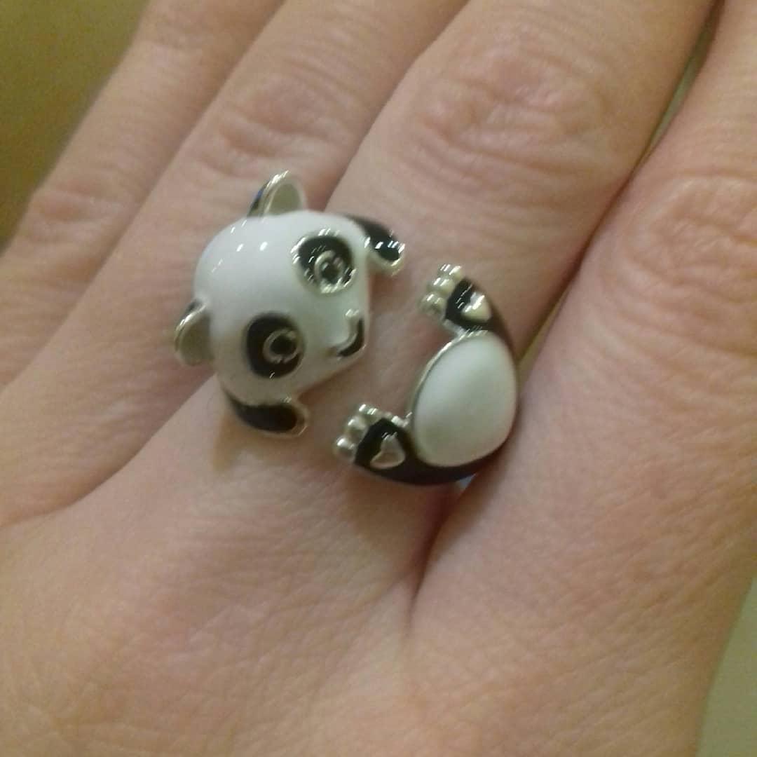 Стильна молодіжна модель у вигляді панди, що обіймає палець. Матеріал – срібло 925 проби, ювелірна емаль.