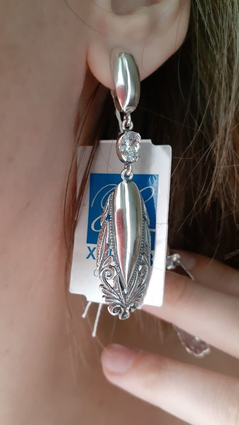 Гарні срібні сережки висюлі. англійська застібка.вага 8.01г. Довжина 6,5 см. ширина 1,5см.виробництво Харків "Хартів".пересилка по Україні